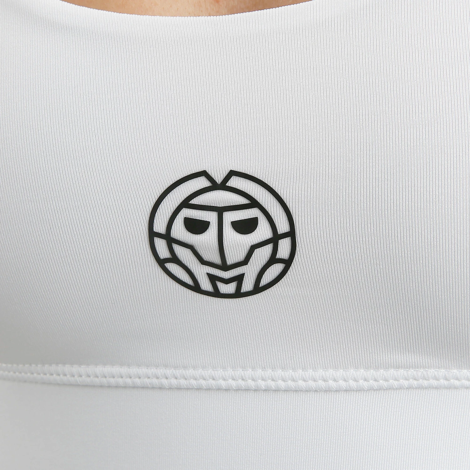 - aufgesetztes Logo, Rückenausschnitt, weiter Rundhalsausschnitt, Ziernähte